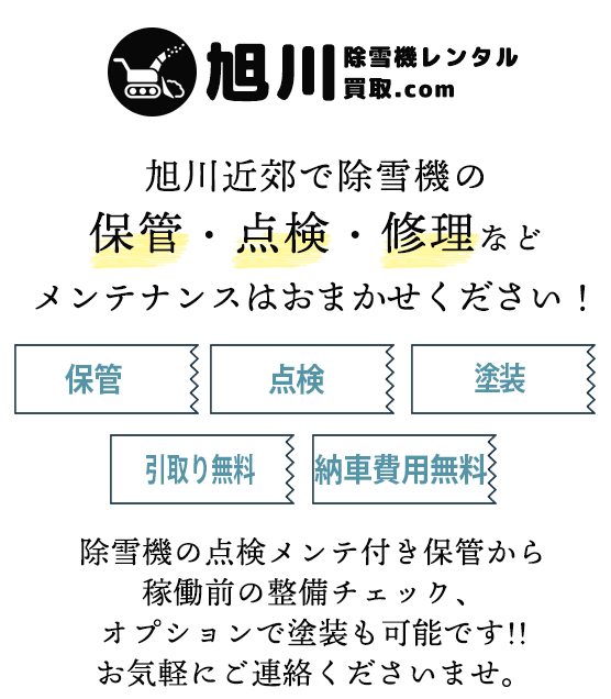 旭川とその近郊で除雪機の保管や点検修理なら旭川除雪機レンタル買取.comまで!