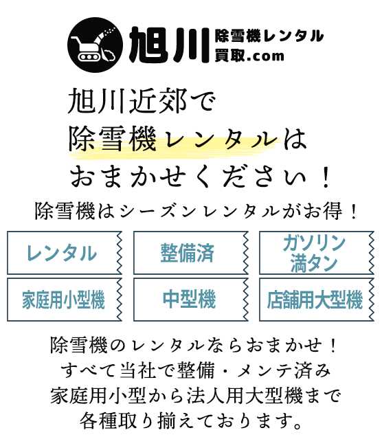 旭川除雪機レンタル買取.comは、旭川とその近郊のみの「地域密着」会社です。